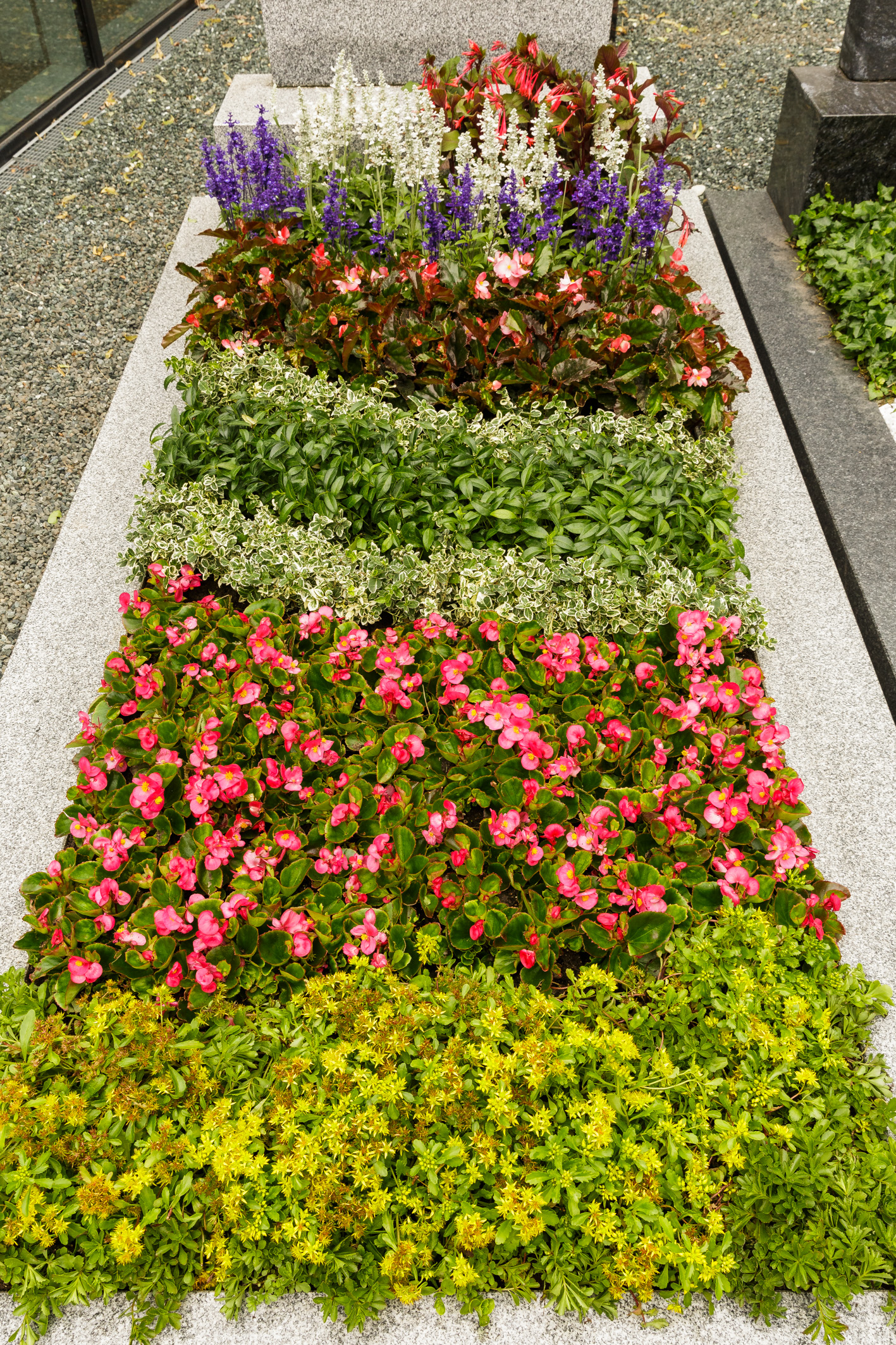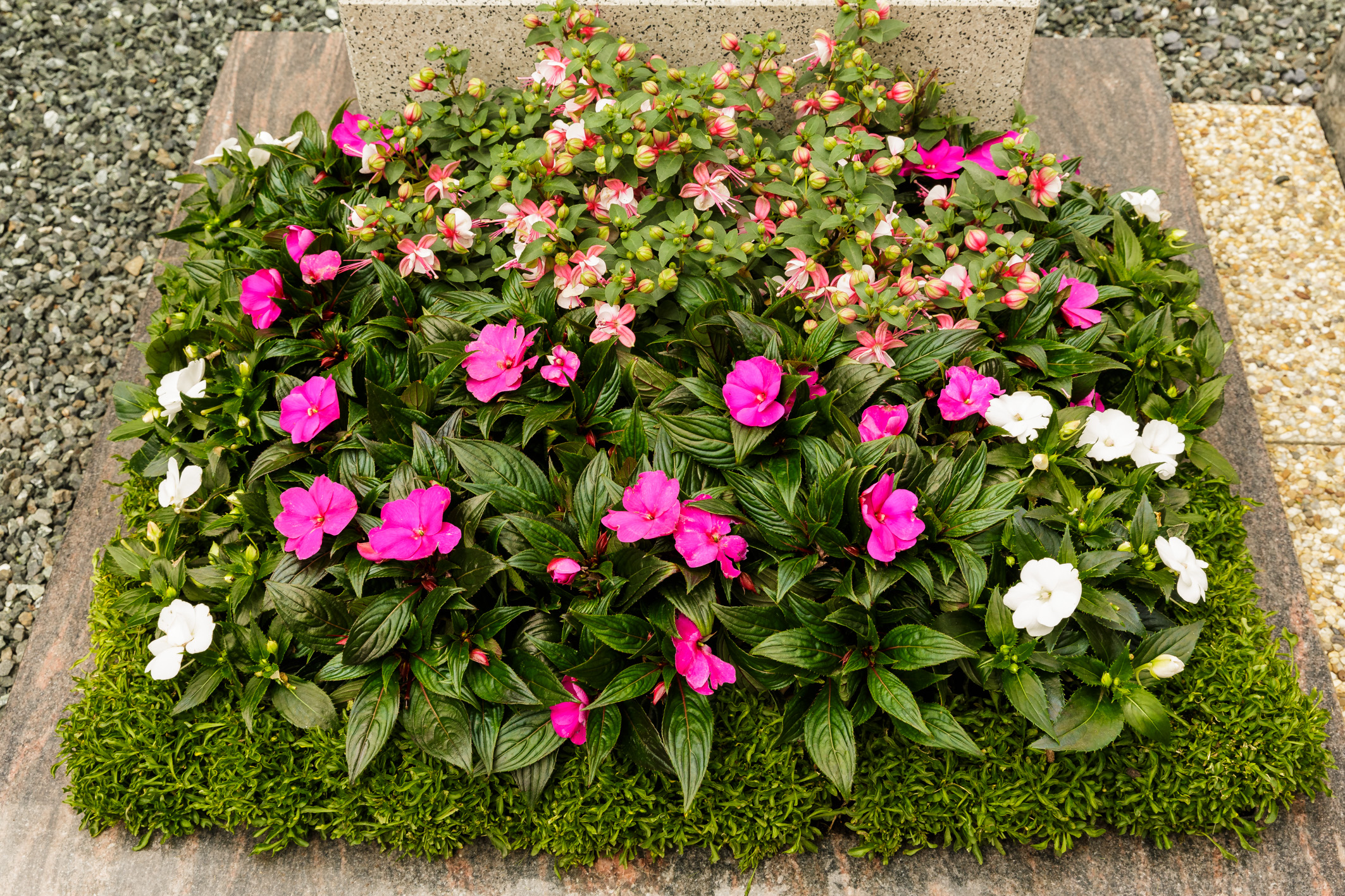Teilfläche und Jardiniere gemischte Sommerblumen