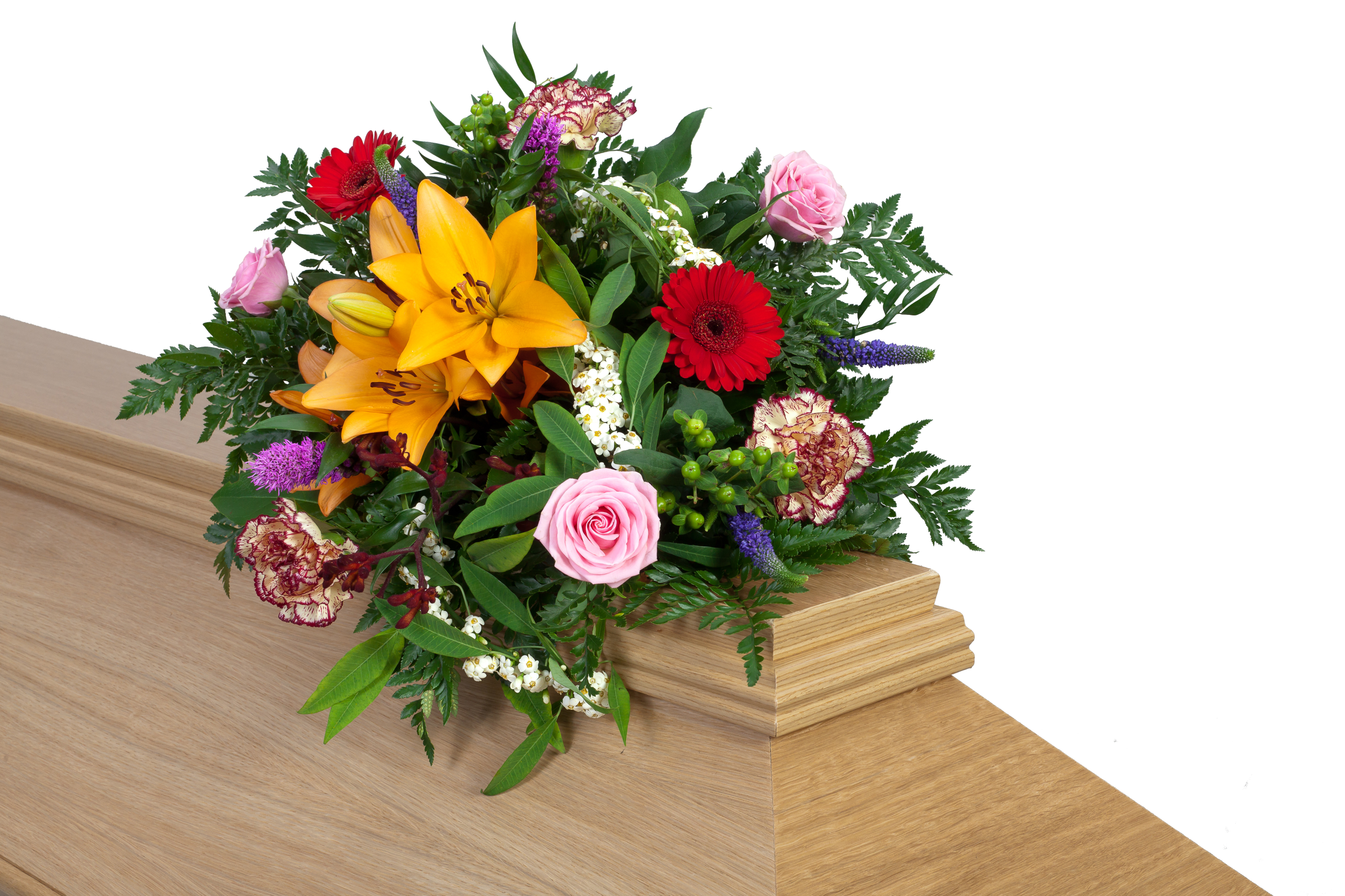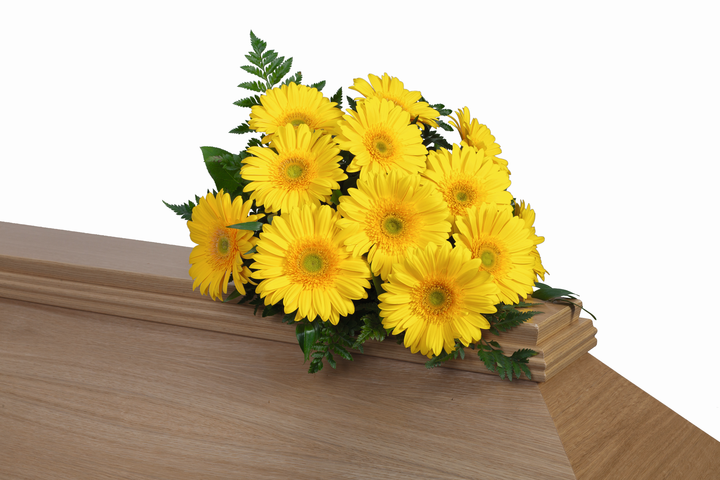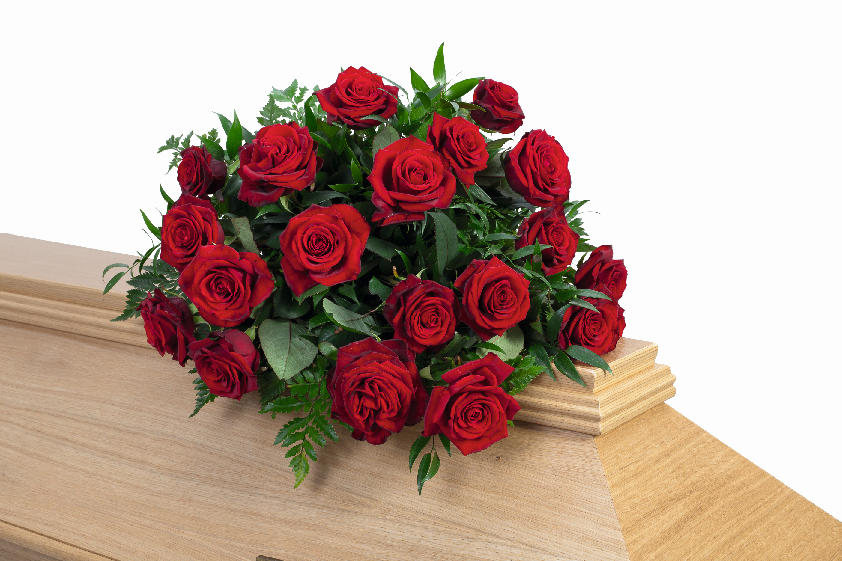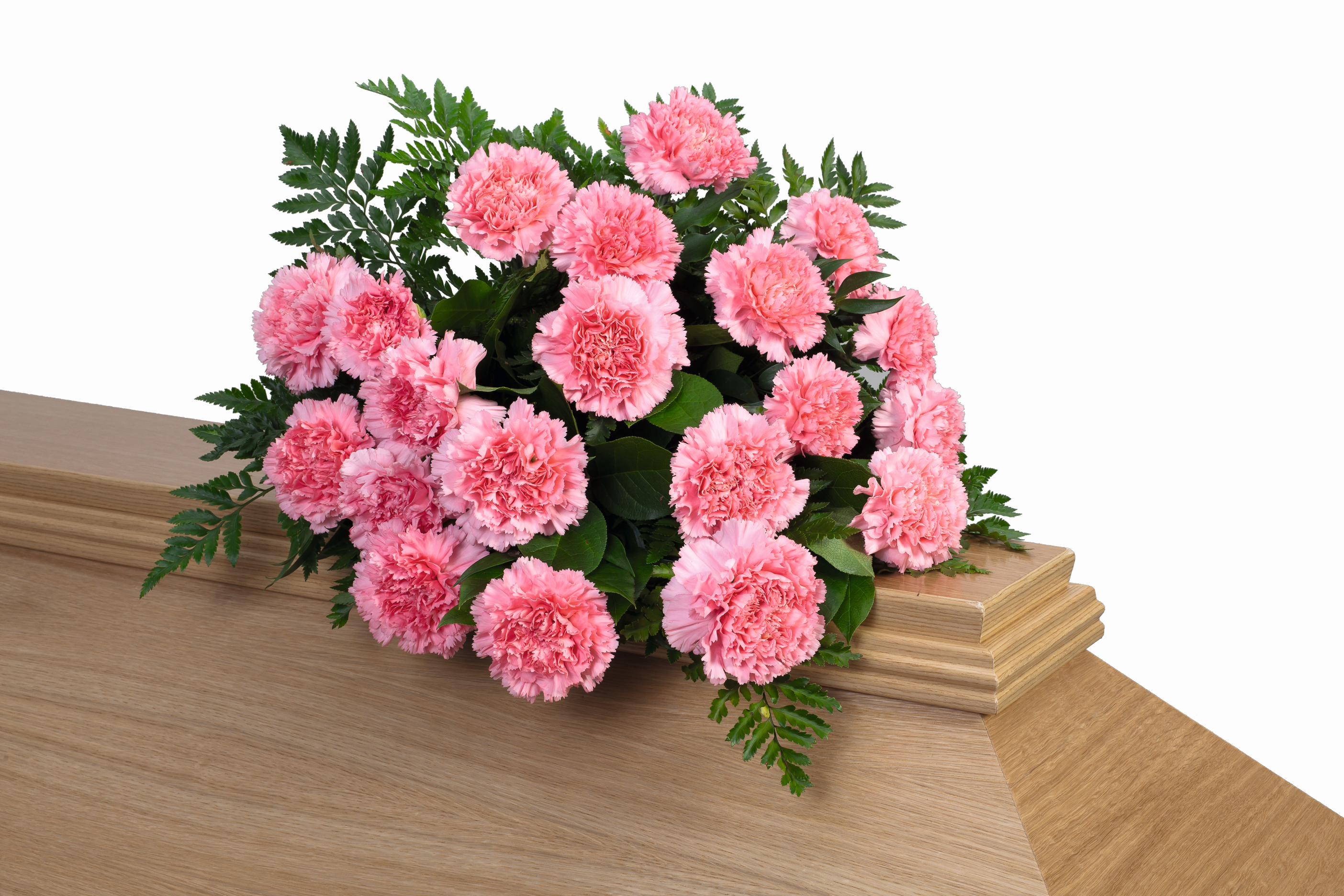 Ein Blumenstrauß zum Ablegen auf dem Sarg